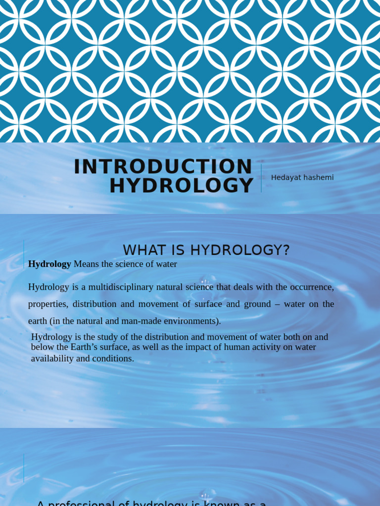 Hydrology is a multidisciplinary natural science that deals with the occurrence,