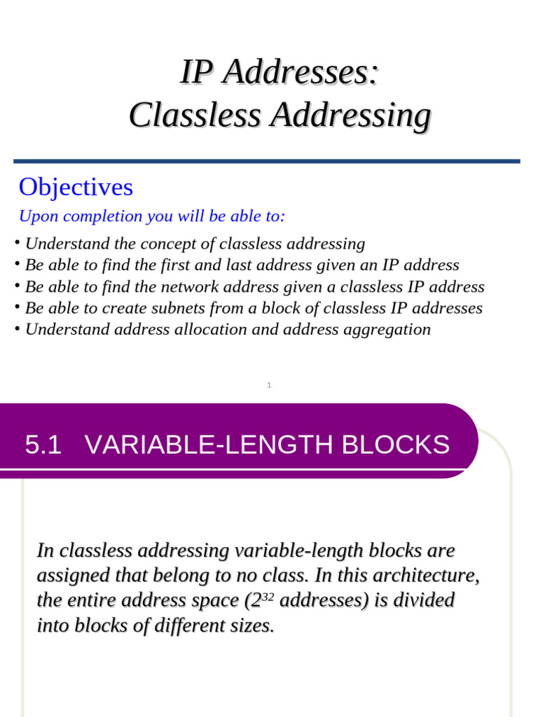 • Understand the concept of classless addressing