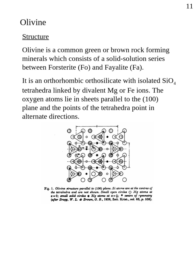 Forsterite Mg2SiO4 to Fayalite Fe2SiO4.