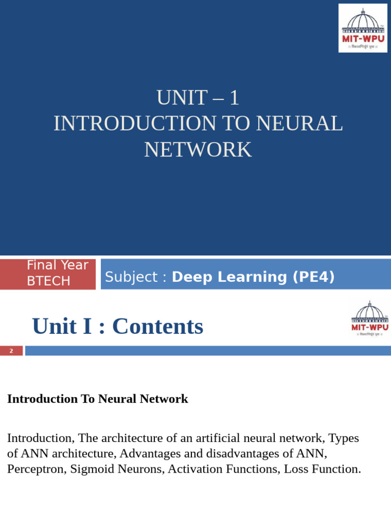 Perceptron, Sigmoid Neurons, Activation Functions, Loss Function.