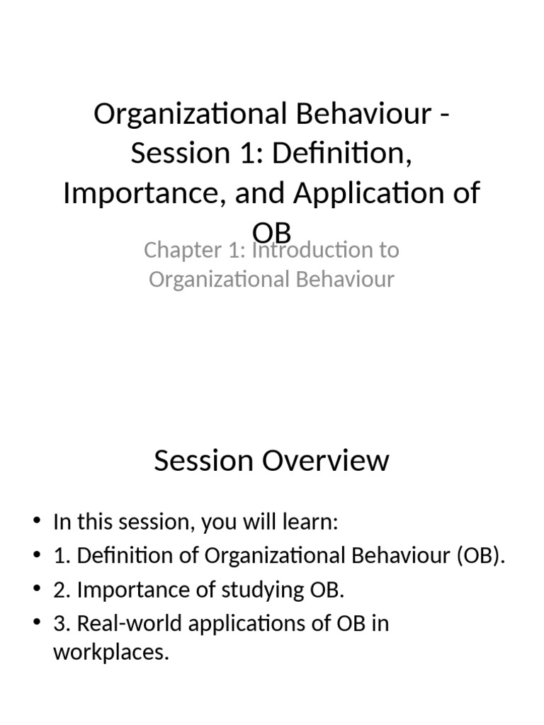 • 1. Definition of Organizational Behaviour (OB).