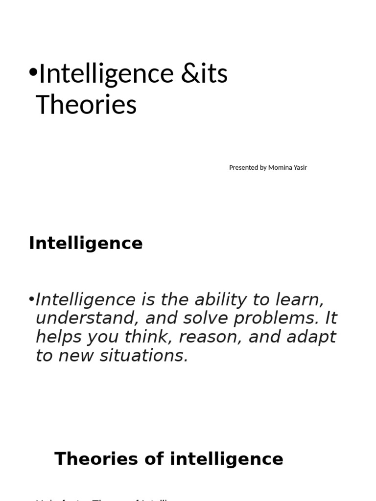 • The Triarchic Theory of Intelligence, proposed by Robert