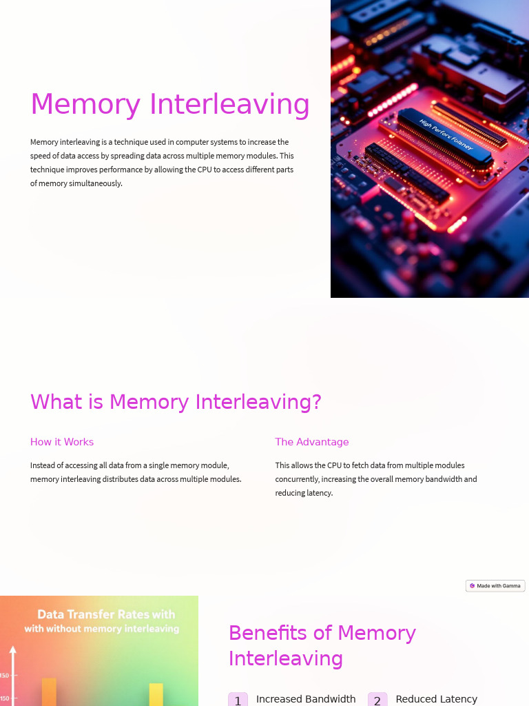 memory interleaving distributes data across multiple modules. concurrently, increasing the overall memory bandwidth and