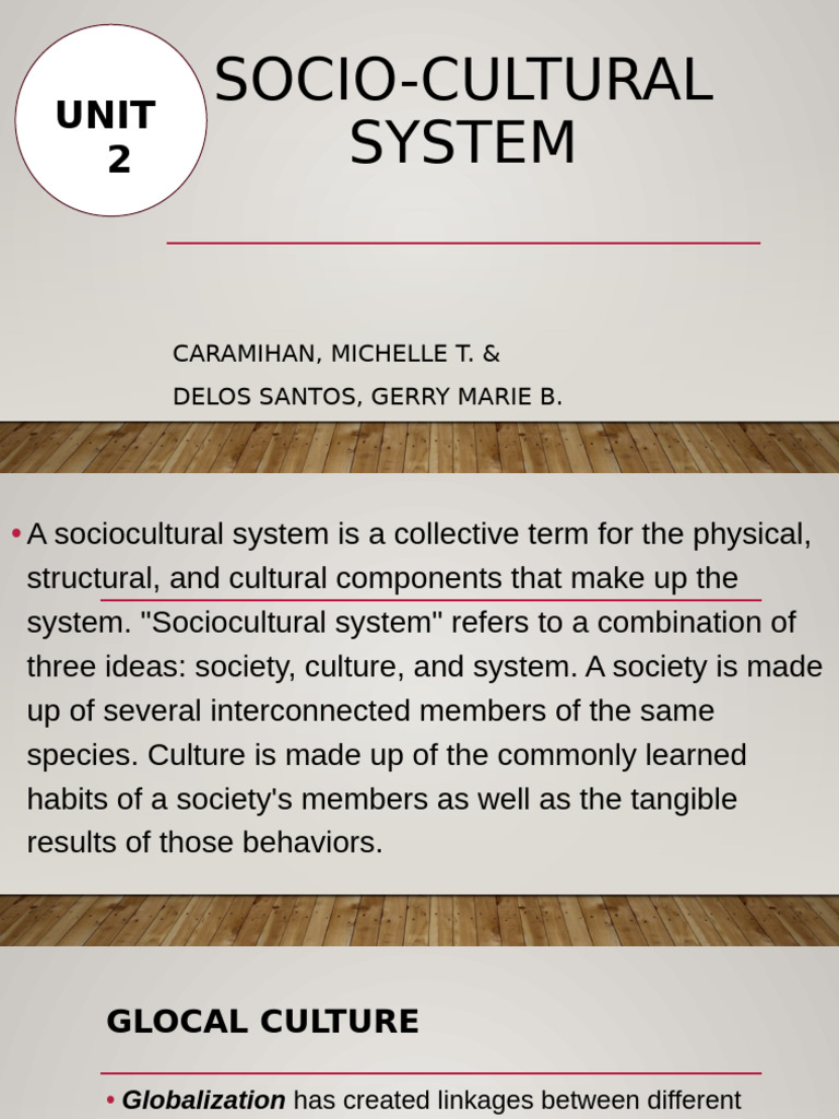 • A sociocultural system is a collective term for the physical,
