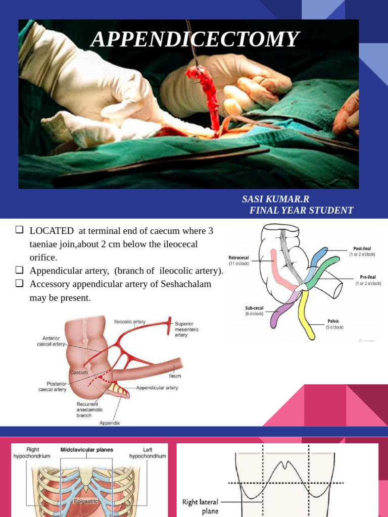 ● Caecum is identified by taeniae, and ileocaecal junction. Omentum