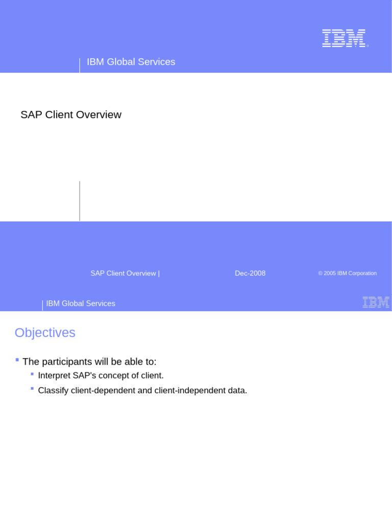 SAP Client Overview | Dec-2008 © 2005 IBM Corporation