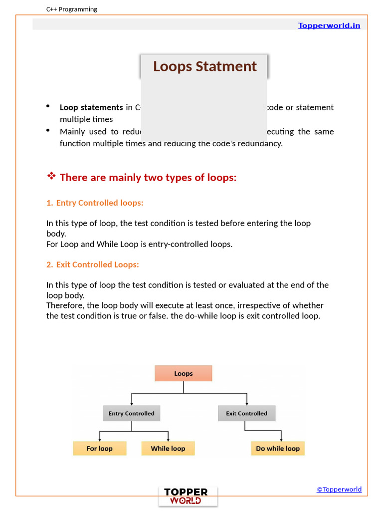 For Loop and While Loop is entry-controlled loops.