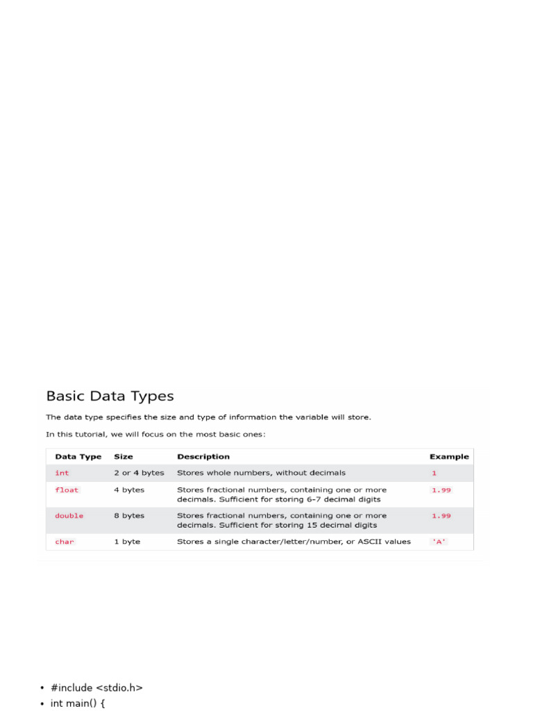 C Numeric Data Types