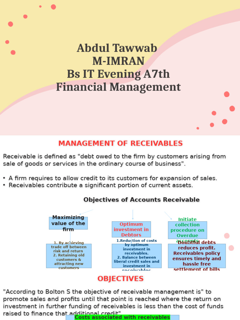 receivables. Receivables policy