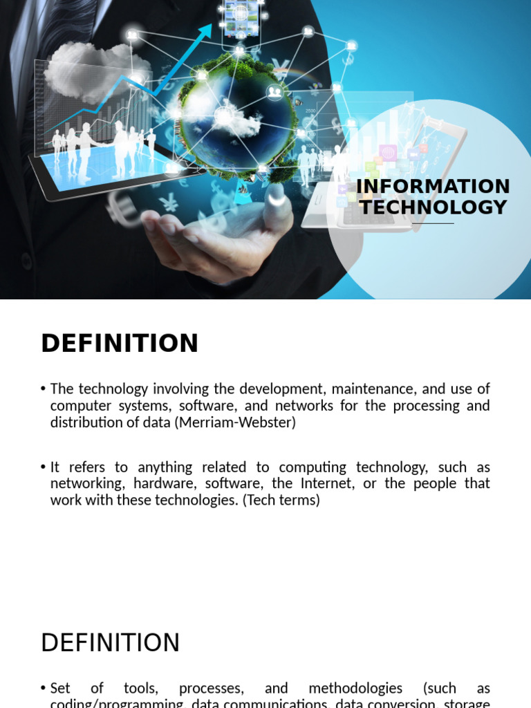 information. In broad terms, IT also includes office automation,