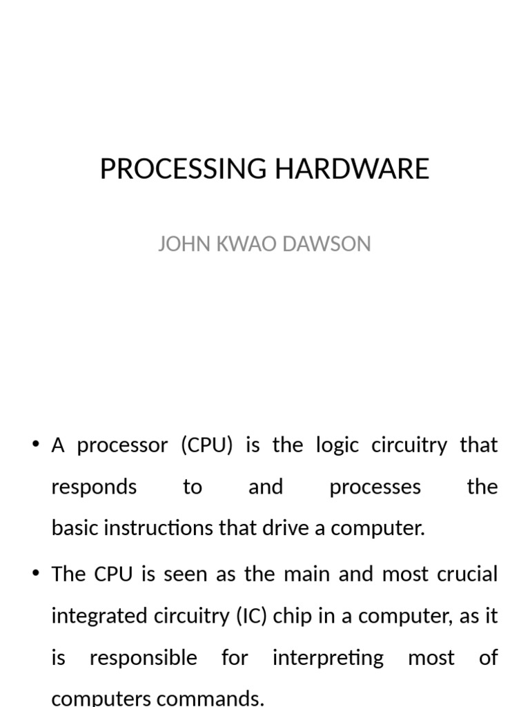 • A processor (CPU) is the logic circuitry that