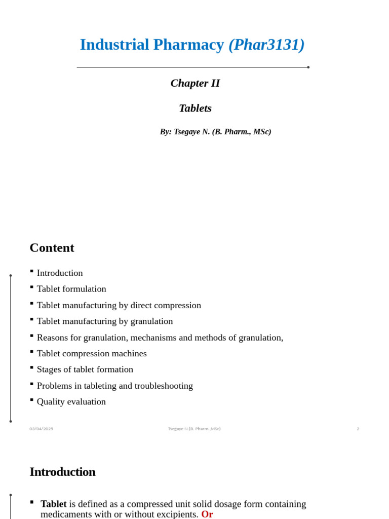 03/04/2025 Tsegaye N.(B. Pharm.,MSc) 2