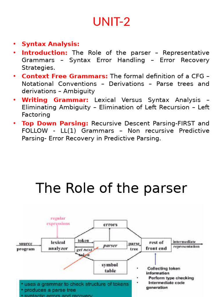 • Introduction: The Role of the parser – Representative