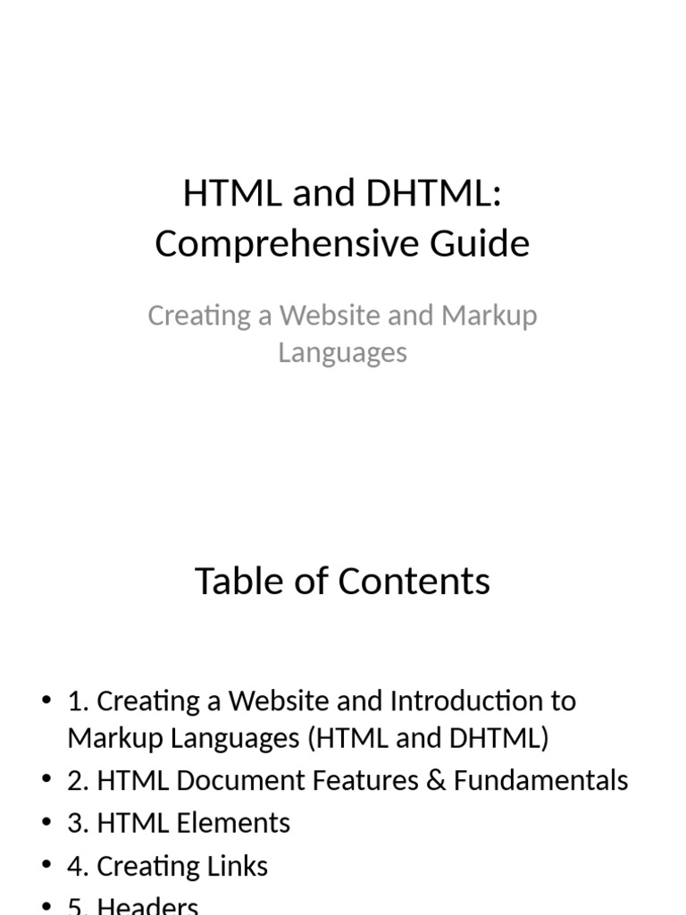 HTML and DHTML: