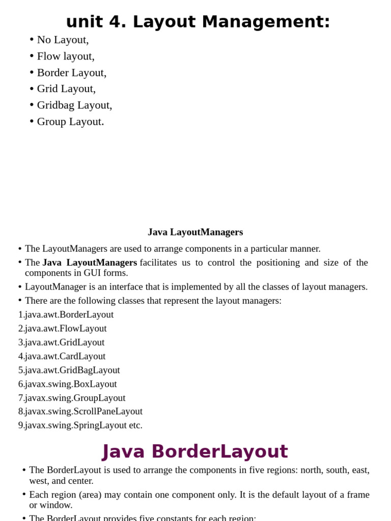 • LayoutManager is an interface that is implemented by all the classes of layout managers.