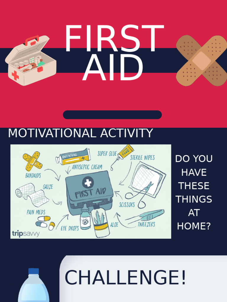 • A first aid kit is a box, bag or pack
