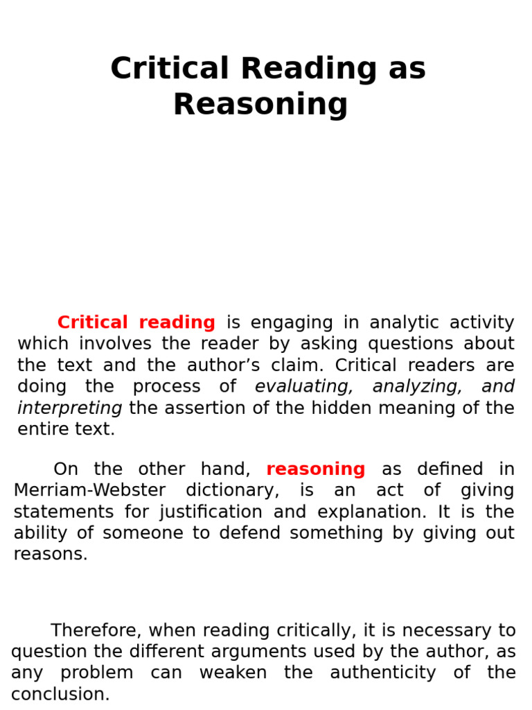 Steps Used in Critical Reading as Reasoning