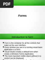 ● Working with form : Form Properties,Creating ,Adding ,Removing Forms