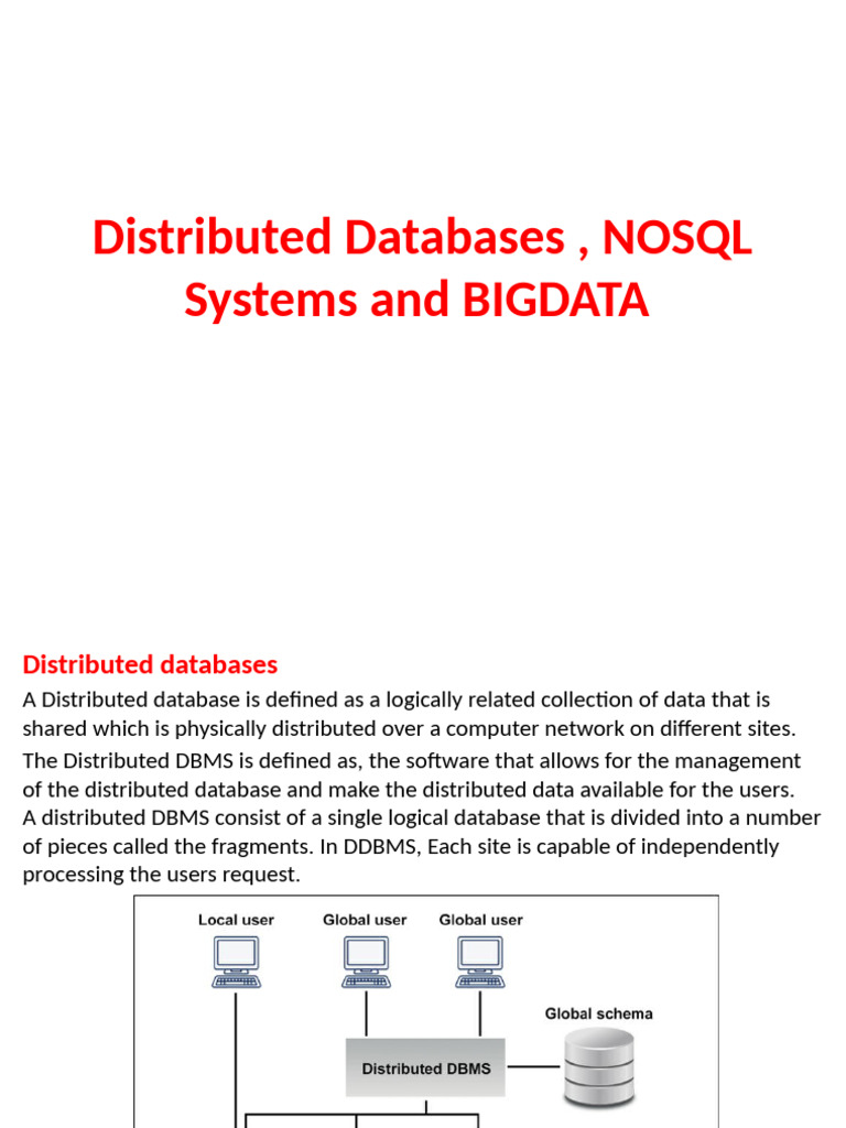 Distributed Databases, NOSQL Systems and BIGDATA