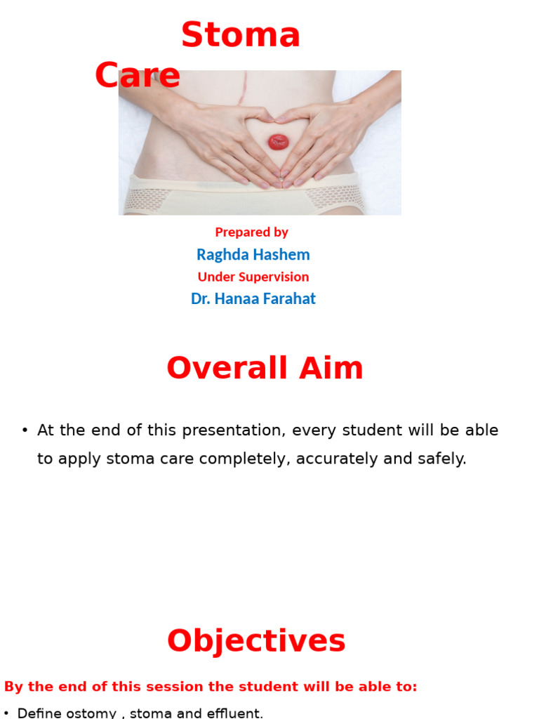 In this presentation, we discussed the essential aspects of Stoma Care,