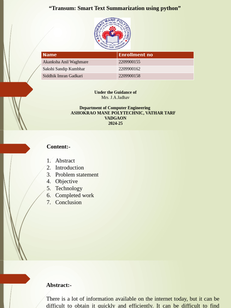“Transum: Smart Text Summarization using python”