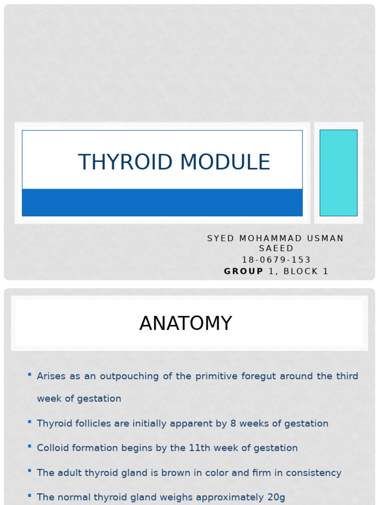 Thyroid follicles are initially apparent by 8 weeks of gestation