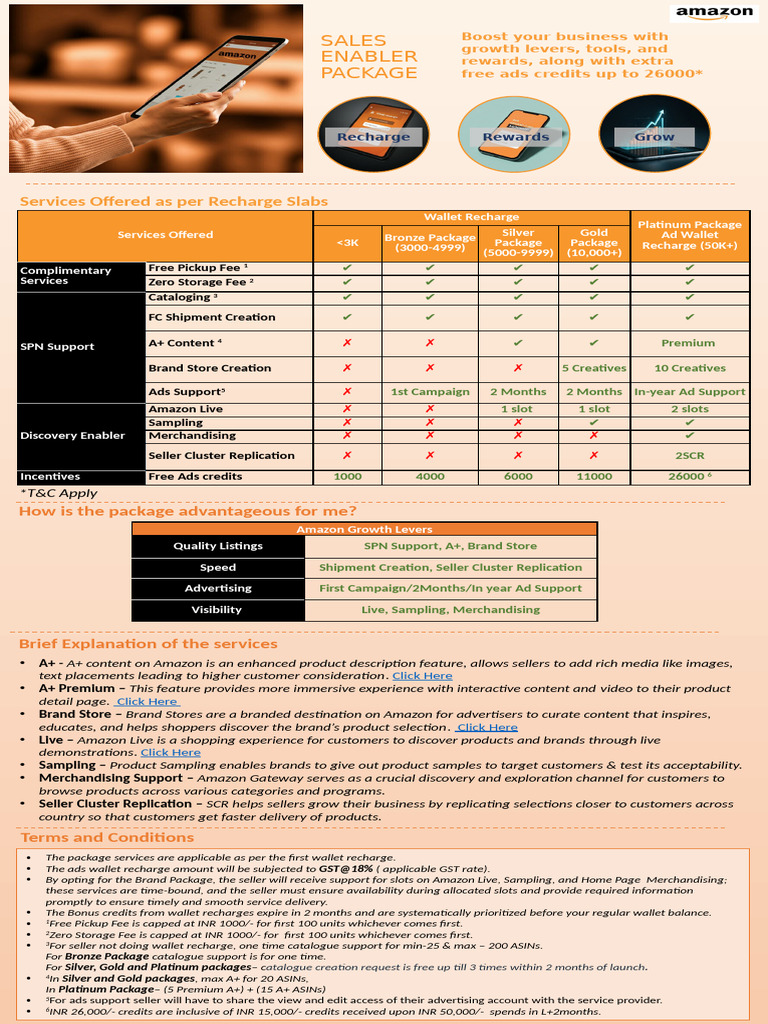 • By opting for the Brand Package, the seller will receive support for slots on Amazon Live, Sampling, and Home Page Merchandising;