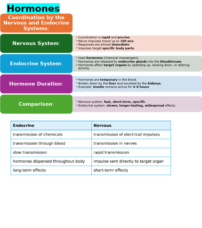 Comparison: • Endocrine system: slower, longer-lasting, widespread effects.