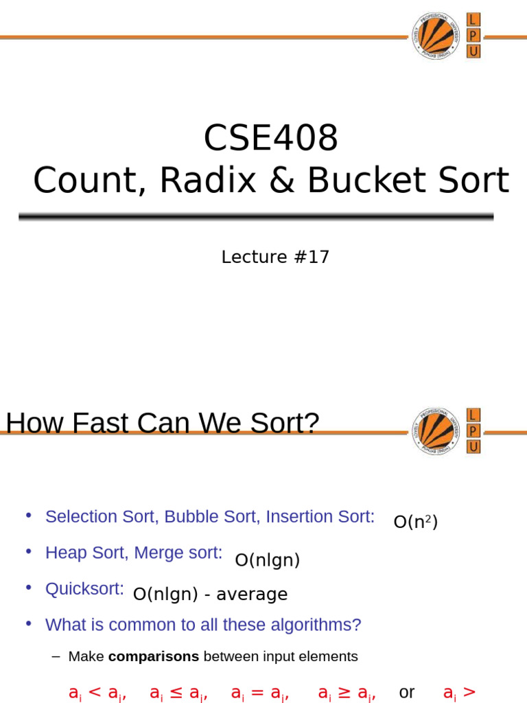 Count, Radix & Bucket Sort