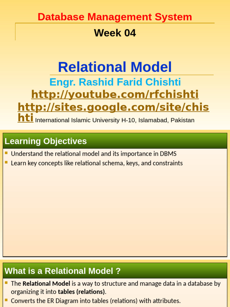 Purpose: Organizes data into tables (relations) with rows and columns.