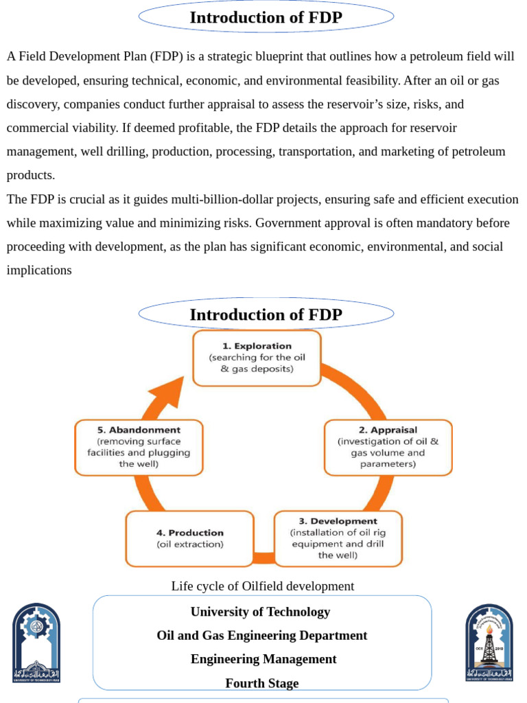 commercial viability. If deemed profitable, the FDP details the approach for reservoir