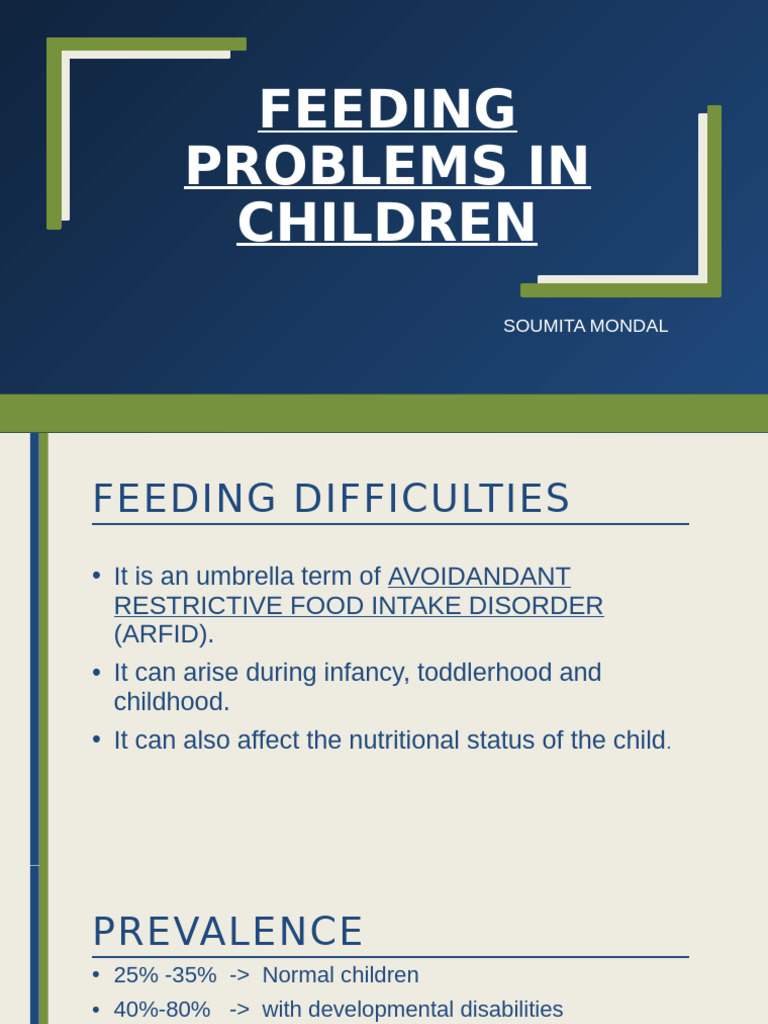 DISORDERS (DSM) refers “feeding disorder as a persistent feeding