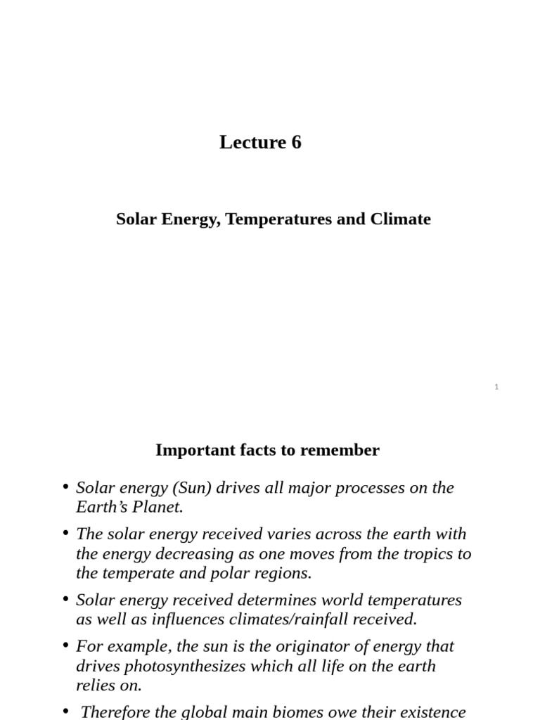 • Much of the heat /energy from the Sun’s radiant energy onto the Earth is