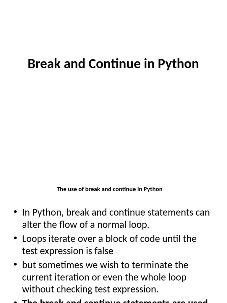 • In Python, break and continue statements can