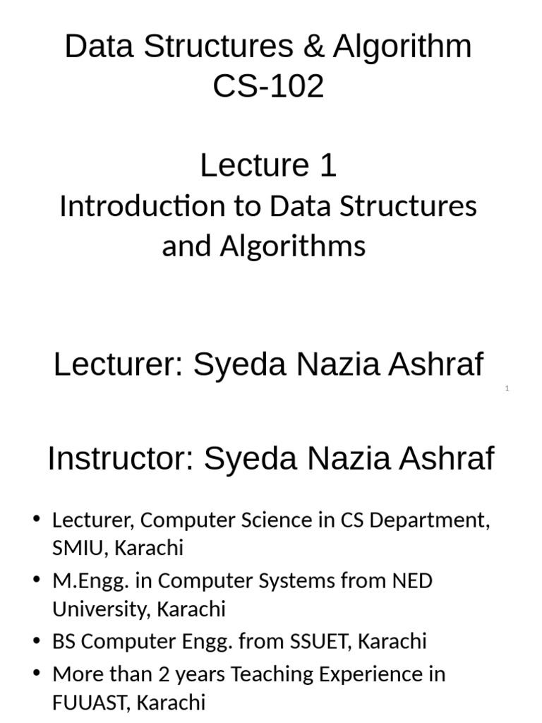 Lecturer: Syeda Nazia Ashraf 1