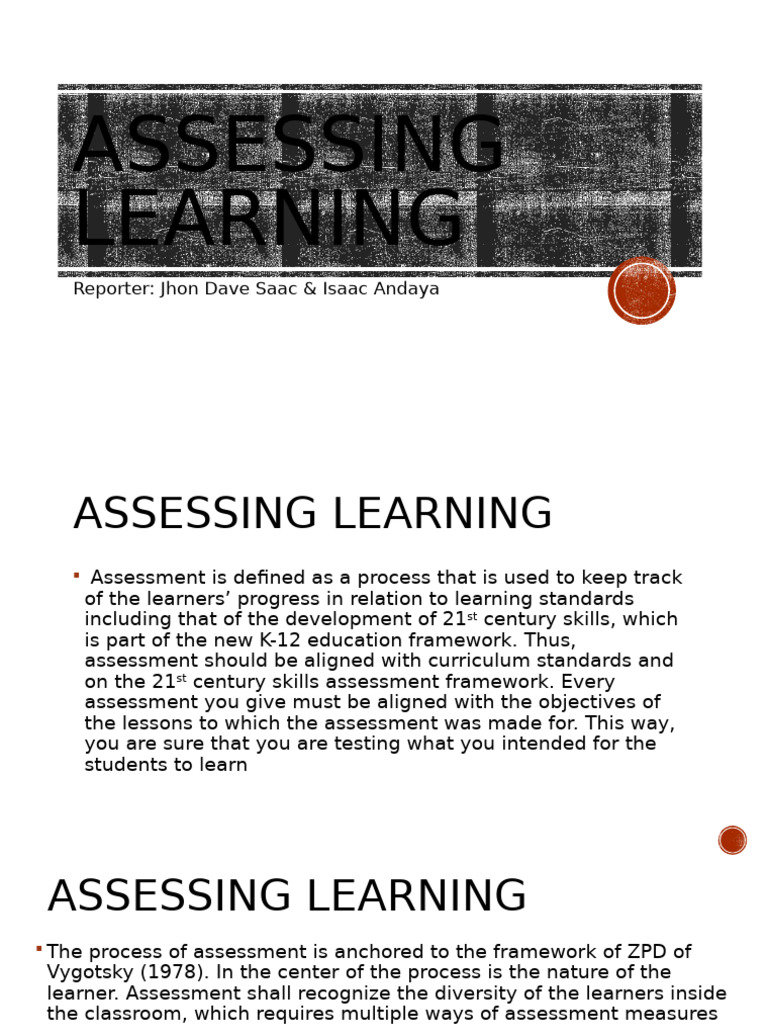Provides teachers the evidence about what the learners know and can do. Teachers
