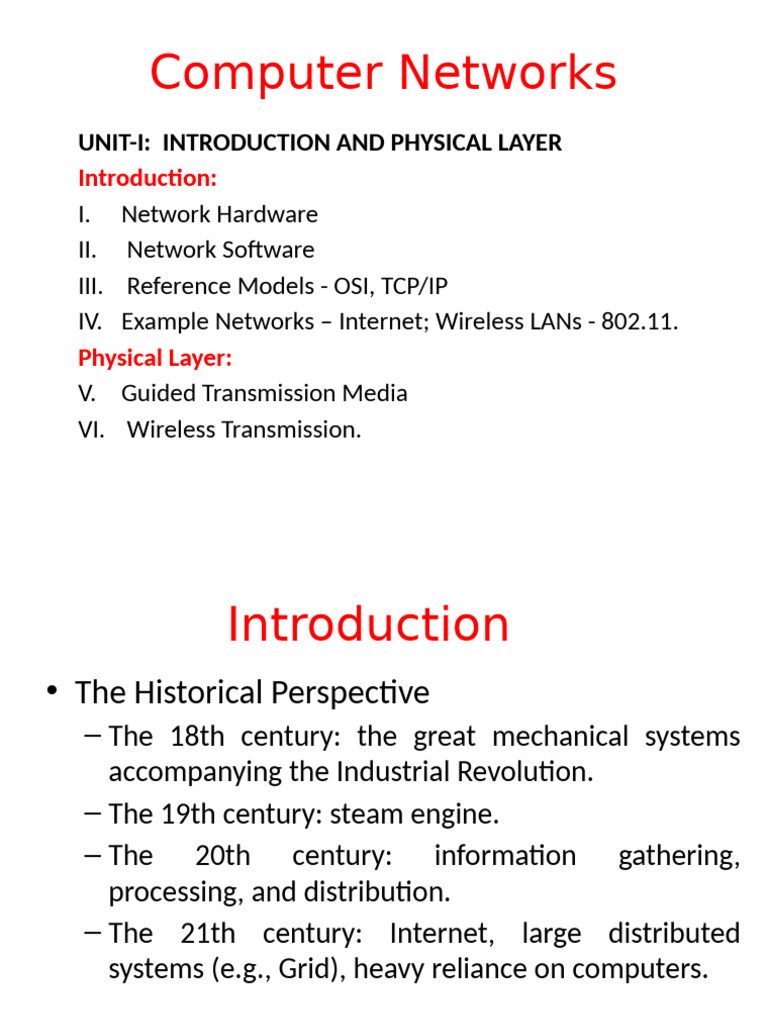 UNIT-I: INTRODUCTION AND PHYSICAL LAYER