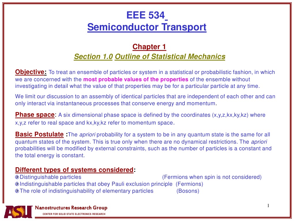 Objective: To treat an ensemble of particles or system in a statistical or probabilistic fashion, in which