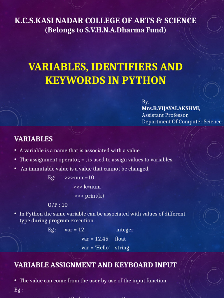 VARIABLE ASSIGNMENT AND KEYBOARD INPUT