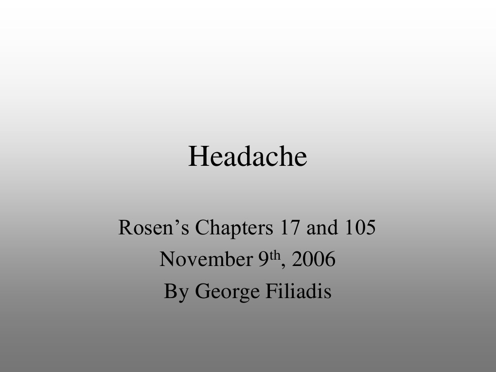 85% of the US population had significant headaches at least once 3-5% of ED visits have as chief complaint headache 50% accounts for tension headache while only 8% of headache has a potentially serious cause Only 1% of headache in ED have life threatening cause(usually subarachnoid hemorrhage)