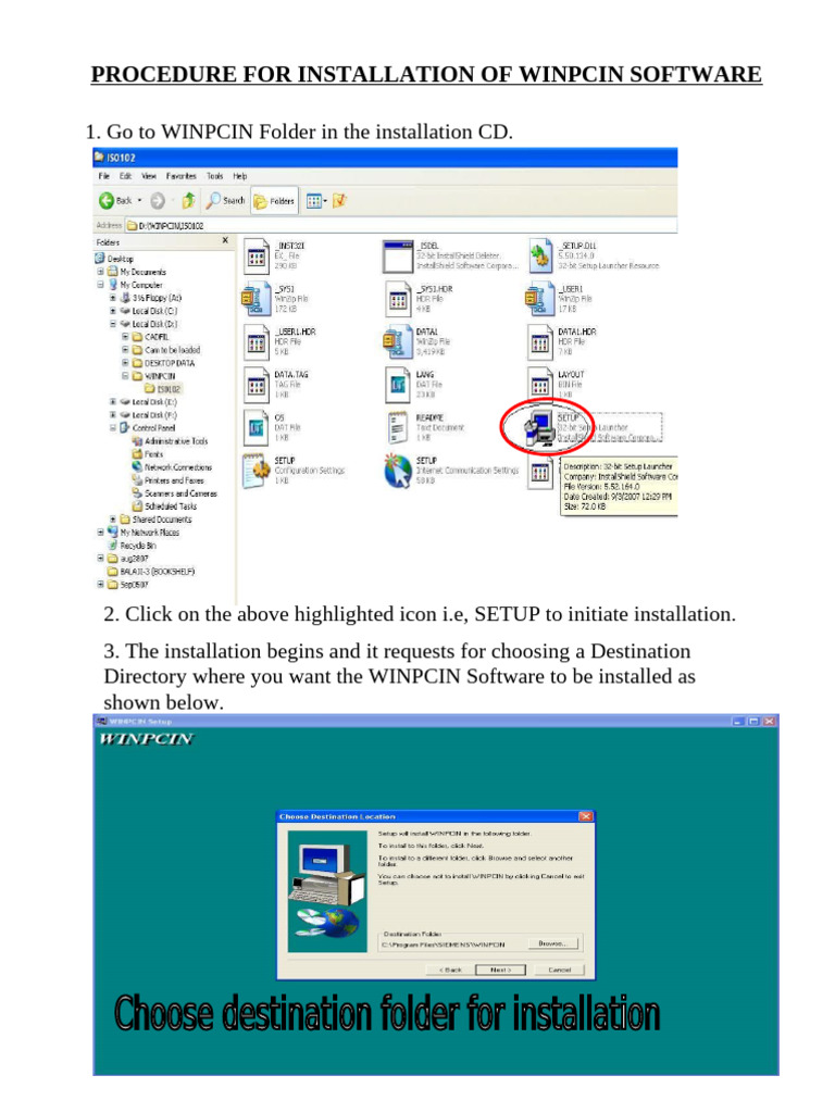 PROCEDURE FOR INSTALLATION OF WINPCIN SOFTWARE