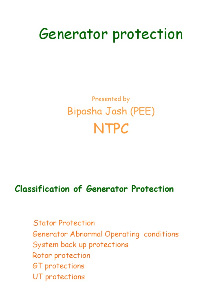 GENERATOR PROTECTIONS NTPC PRACTICES