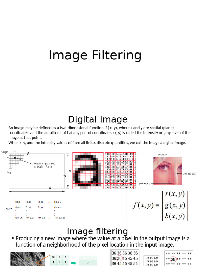 • Linear filters are used to improve images by: Sharpening edges, Reducing noise,