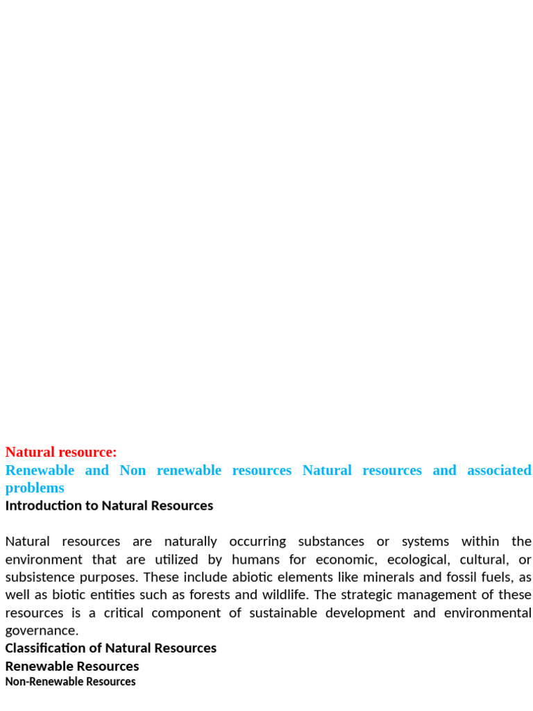 subsistence purposes. These include abiotic elements like minerals and fossil fuels, as