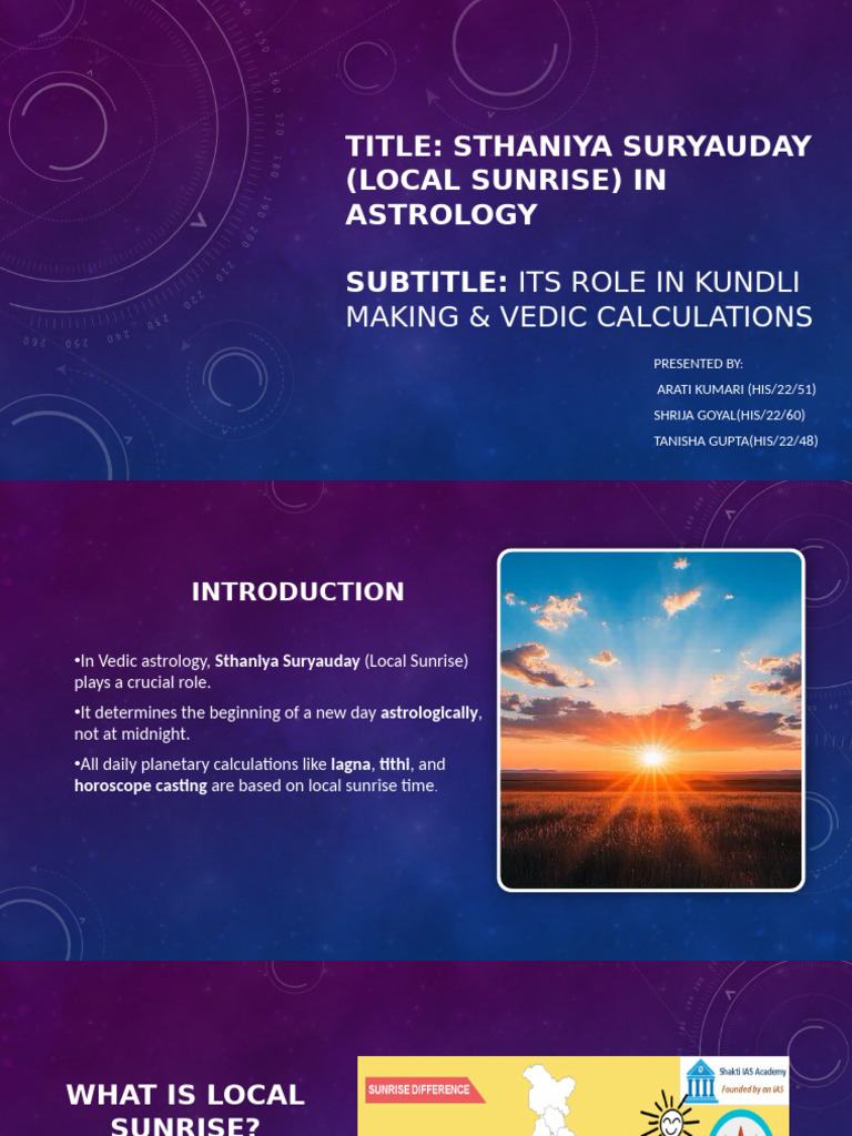 •In Vedic astrology, Sthaniya Suryauday (Local Sunrise)