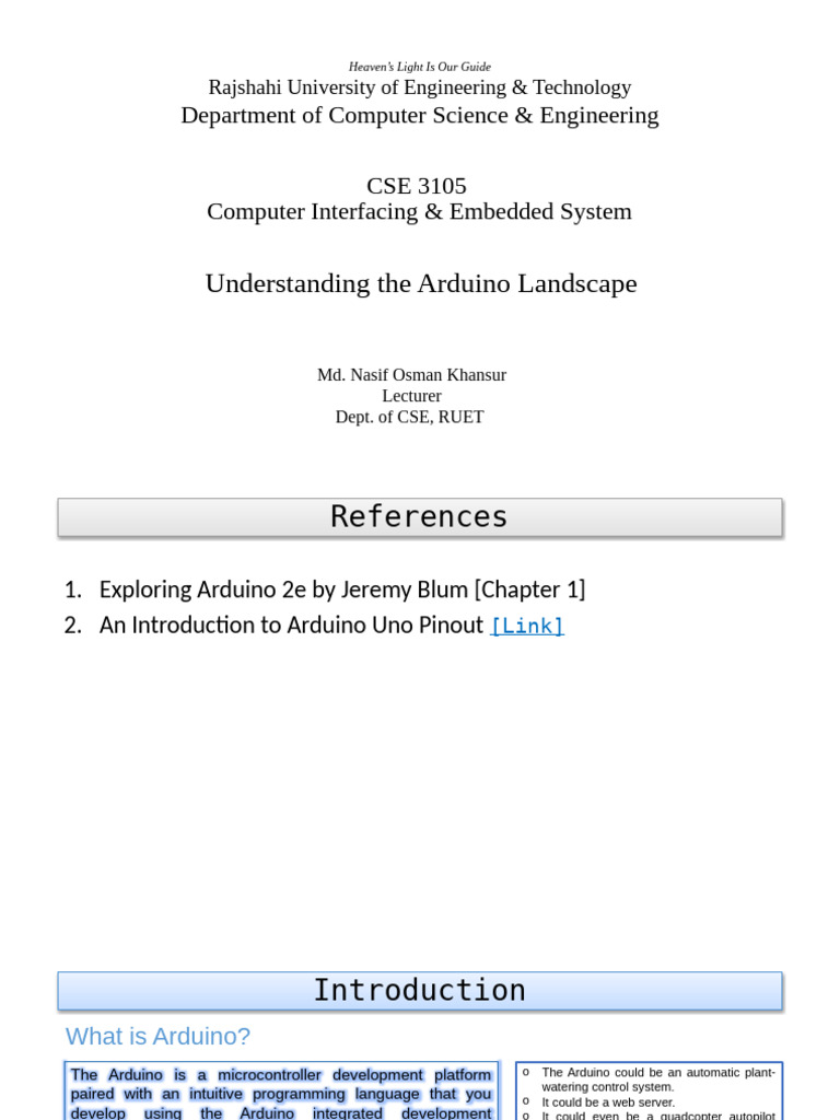 The Arduino is a microcontroller development platform o The Arduino could be an automatic plant-