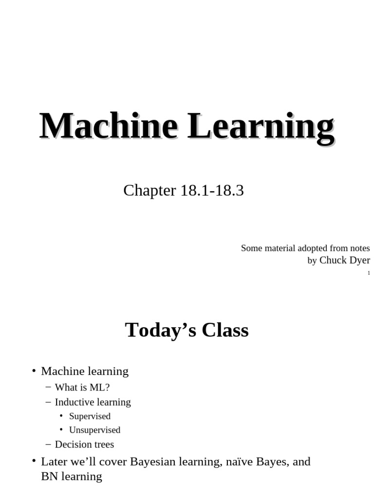 • Later we’ll cover Bayesian learning, naïve Bayes, and