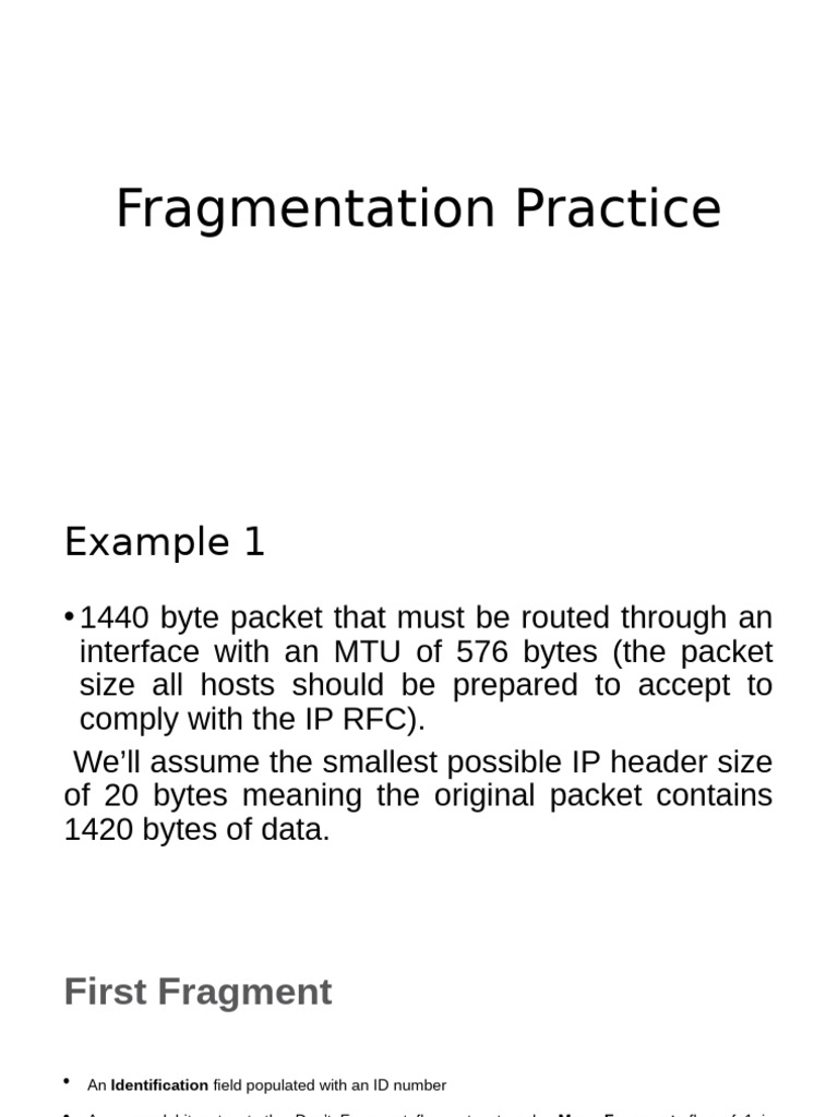 576 byte packet hasn’t been used because the fragment offset field in the following fragment must
