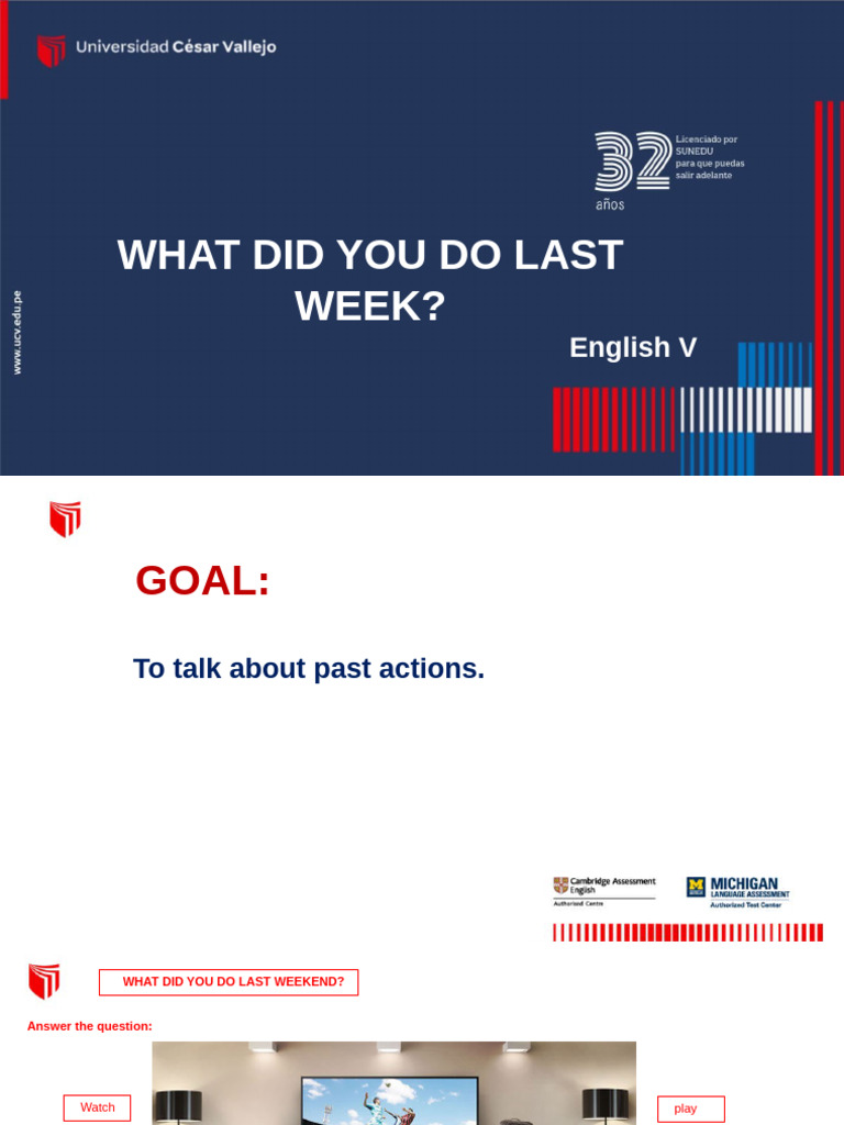 Goals: To talk about actions in simple past. V