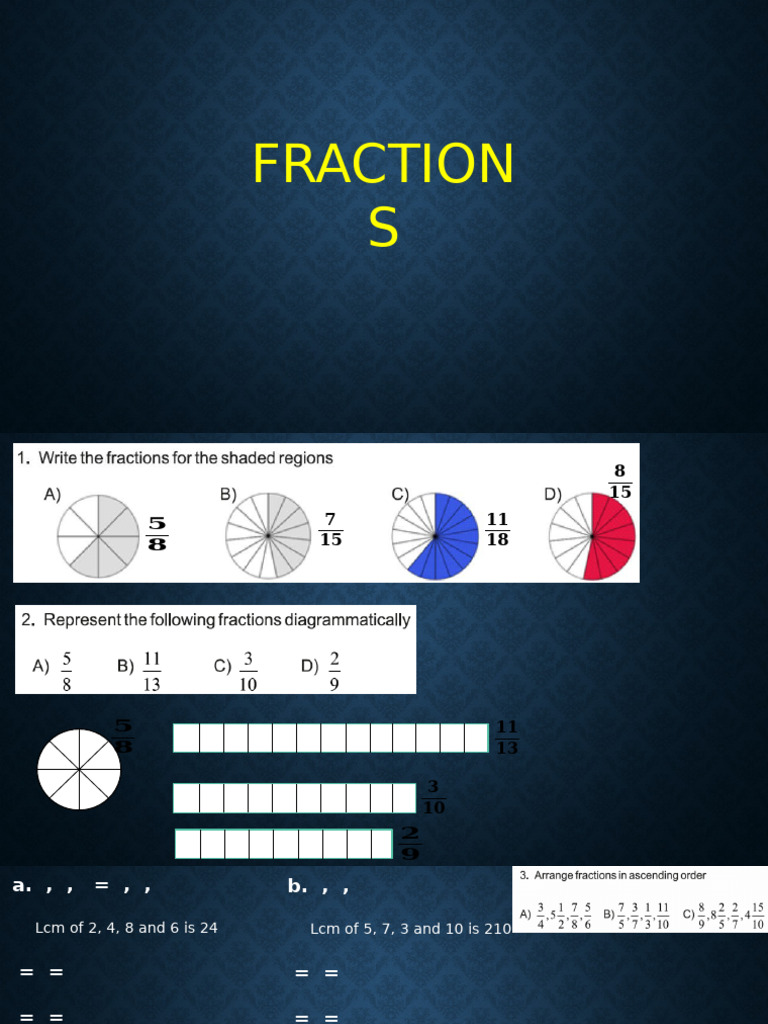 Lcm of 2, 4, 8 and 6 is 24 Lcm of 5, 7, 3 and 10 is 210